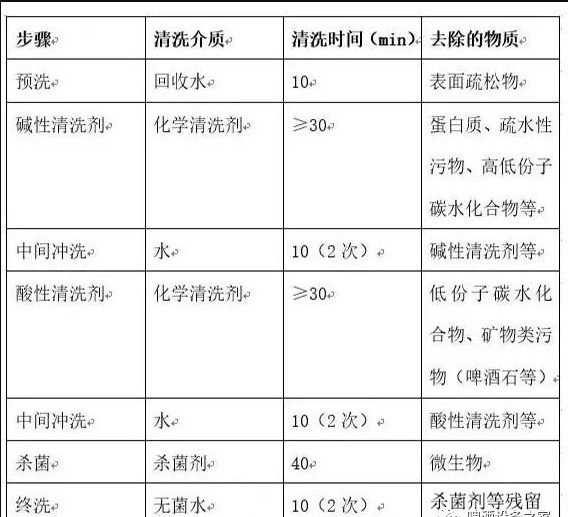 在釀完一個(gè)批次的酒以后,由于各種原因會(huì)沉積一些污物,污物顆粒主要有蛋白質(zhì)、油脂、脂肪顆粒、干酵母、酒花樹(shù)脂、啤酒石和礦物質(zhì)等,它們附著并沉積在設(shè)備和管道的內(nèi)表面,使其變得粗糙難以清洗,給微生物生長(zhǎng)提供了棲息地,同時(shí)削弱了殺菌劑的作用。設(shè)備清洗的主要目的就是盡可能將上述蛋白質(zhì)、碳水化合物形成的污垢膜及沉積的礦物質(zhì)給沖洗掉。由于殺菌劑只能殺死污物表層的細(xì)菌,而內(nèi)部存活的細(xì)菌以后還會(huì)暴露出來(lái),造成再次污染,所以在清洗時(shí)必須去除已經(jīng)存在的微生物菌落。