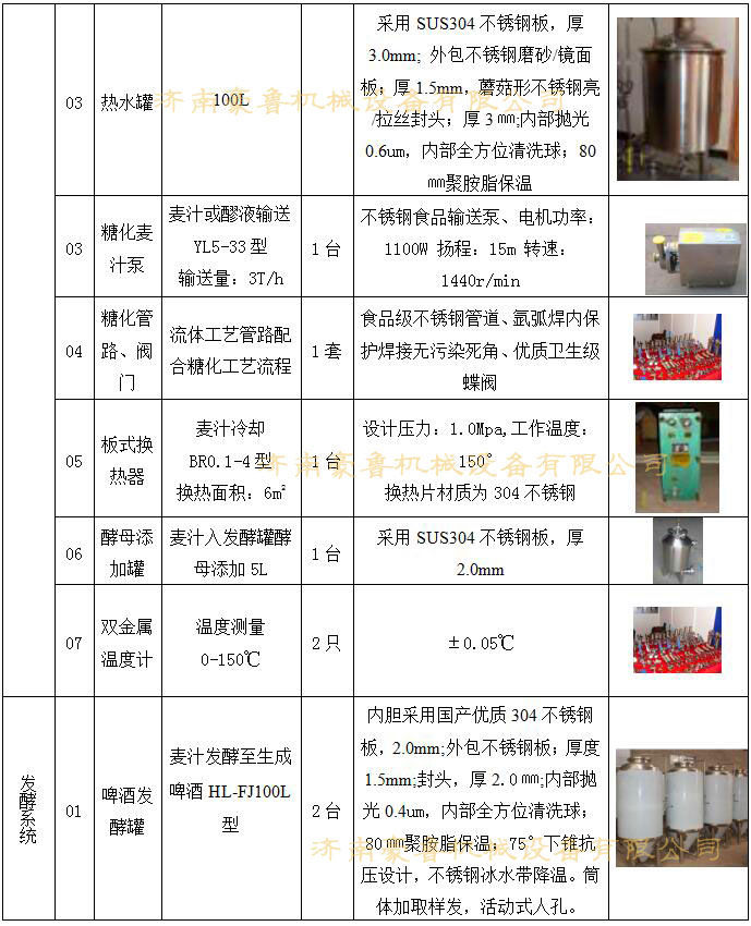 - 該設(shè)備還具備完善的CIP清洗、殺菌系統(tǒng),設(shè)備與管道布局無(wú)死角,設(shè)備加工精良,焊接精度達(dá)到衛(wèi)生級(jí)標(biāo)準(zhǔn);內(nèi)部采用多鏡面拋光,外部采用不銹鋼拋亞光處理,美觀實(shí)用;管路采用衛(wèi)生級(jí)不銹鋼管路,單面焊接雙面成型。既可幫助開(kāi)發(fā)試驗(yàn)啤酒新品種、試驗(yàn)啤酒新原料、研究新工藝,又能滿(mǎn)足平時(shí)教學(xué)要求。