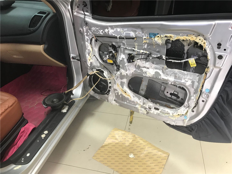下面小編給你看看,部分車主用的瀝青材料做的門板隔音: